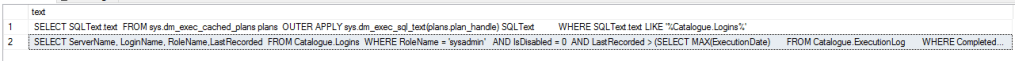 WHERE SQLText.text LIKE '%Catalogue.Logins%'